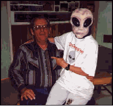 I jumped up and headed for the trailer to get the camera and recorded these photos. As you can see, they were very friendly, the female Alien sat on my lap and posed for pictures (can't show you the nude ones) and they even let Kathy hold one of the baby Aliens for awhile. After saying our good bye's, we went for a walk to work off dinner. That was when we noticed all the UFO's in the night sky (lots of them, may have been jets from Area 51 or Nellis AFB). At about 1:00 in the morning the sonic boom hit and I thought the trailer would collapse. We got up in the morning, had breakfast at the same place (no Aliens this time) and left. Well there you have it, Rachel, Aliens, UFO's, Airplanes, Area 51, etc. The pictures tell the rest of the story. Now do you really believe in Alien's and UFO's ?